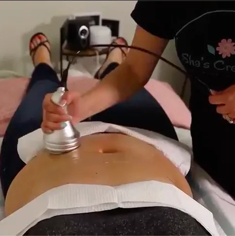 Fat Cavitation is a non-invasive treatment that uses ultrasound technology to break down fat cells. Ultrasound gel is applied to the skin before the treatment begins, helping the machine glide smoothly while targeting fat cells beneath the surface.